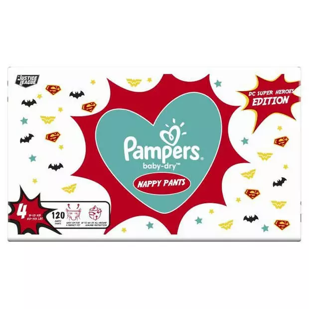 Pampers Baby-Dry Luiers helpen geeuwen en lekken te voorkomen. Dankzij hun volledige 360 ° -ondersteuning, ontworpen met een ultra-rekbare riem die zich aanpast aan het buikje van uw baby, een superabsorberende kern die onmiddellijk vocht absorbeert en een dubbele anti-lekbarrière.