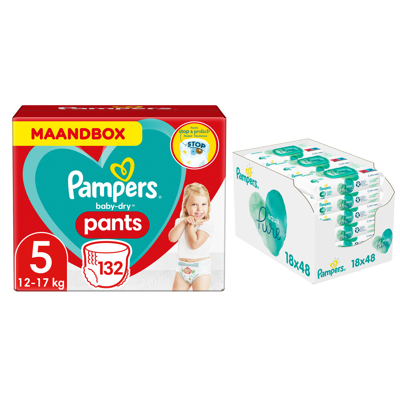 Pampers® Pampers Baby Dry Pants Maandbox Maat 5 132 Luierbroekjes En Aqua Pure 864 Billendoekjes Pakket