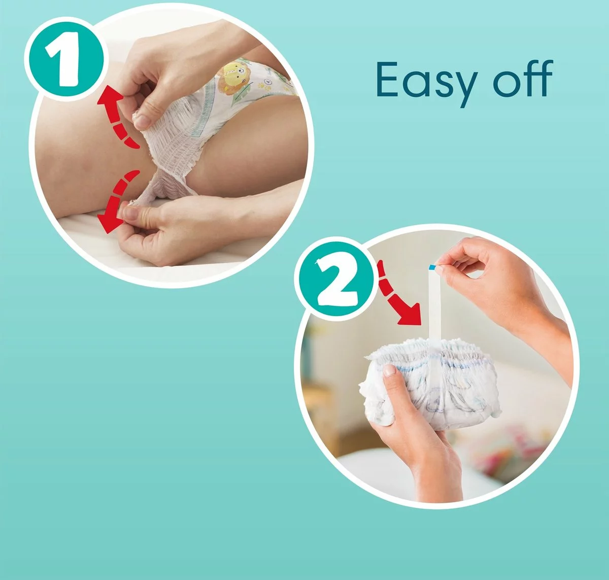 Pampers Baby-Dry Pants Luierbroekjes zijn eenvoudig te verwisselen dankzij hun ultra-rekbare 360° tailleband.