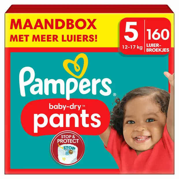 Pampers Baby-Dry Pants luierbroekjes bieden tot 12 uur rondom bescherming tegen lekken dankzij de combinatie van de revolutionaire Stop & Protect Pocket en een 360° pasvorm. Ze hebben bovendien een superabsorberende kern die vocht onmiddellijk absorbeert en beschermrandjes die lekken rondom de beentjes helpen voorkomen. Wanneer je baby tijdens het verschonen begint te wriemelen, zijn de Pampers Baby-Dry Pants luierbroekjes eenvoudig om te verschonen: dankzij hun flexibele tailleband trek je ze in één beweging aan. Je scheurt de zijkanten open om ze uit te trekken, rolt ze op en plakt ze dicht met de plakstrip om ze weg te gooien. Net zoals bij jou, komt jouw baby’s veiligheid bij Pampers op de eerste plaats: Pampers Baby-Dry Pants luierbroekjes zijn dermatologisch getest en bevatten 0% EU-parfumallergenen (zoals gereglementeerd in de regelgeving voor cosmetica nr. 1223/2009). Ze zijn goedgekeurd door de dermatologen van de Skin Health Alliance en getest en gecertificeerd conform het label Standard 100 van Oeko-Tex.