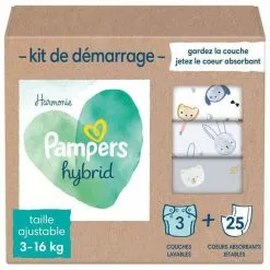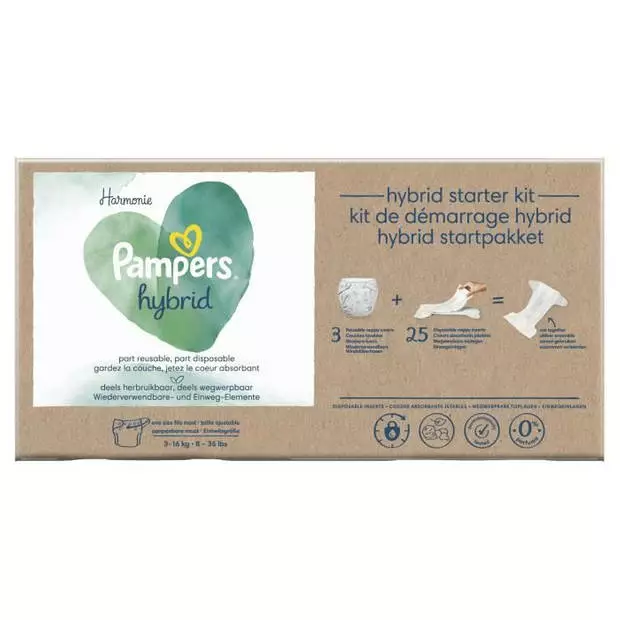 Ontdek Pampers Harmonie Hybrid, een systeem dat uit twee delen bestaat: een wasbare luier die zich aanpast aan je baby terwijl ze groeien en een superabsorberende wegwerpkern voor volledige bescherming tegen lekken. Absorberende kernen helpen de gevoelige huid van uw baby te beschermen. 0% parfum.
