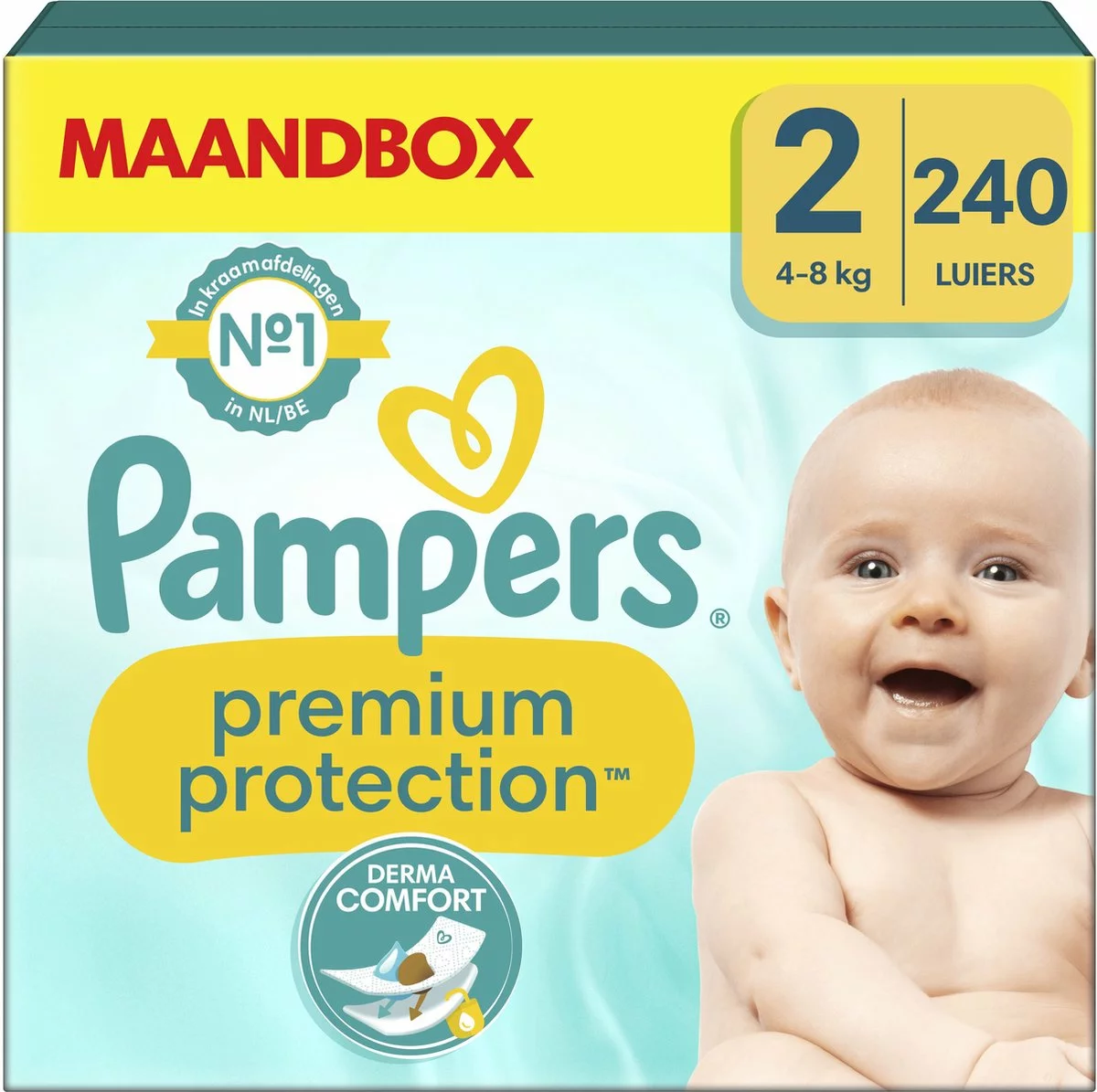 Pampers N°1 luiers voor comfort en bescherming van de gevoelige huid. Langdurig contact met urine en ontlasting kan de gevoelige huid van je baby irriteren, wat ongemakkelijk en pijnlijk kan zijn voor je baby. Pampers Premium Protection luiers zijn speciaal ontworpen zodat ze heel zacht aanvoelen en tegelijk de huid beschermen dankzij 1) een unieke DermaComfort toplaag met absorberende poriën die urine en ontlasting onmiddellijk weghoudt van de huid en vasthoudt in de kern van de luier. Zo blijft de gevoelige huid van je baby droog en beschermd. 2) Daarnaast laten miljoenen microporiën lucht vrij rond de luier stromen om de huid droog te houden; en 3) Tot 100% bescherming tegen lekken dankzij een uniek 3-voudig beschermingssysteem dat urine snel absorbeert en lekken ter hoogte van de taille en rond de beentjes helpt voorkomen; 4) Ultrazachte materialen die je baby in een wolk van comfort en bescherming hullen. Pampers Premium Protection, de N°1 keuze van de kraamafdelingen in Nederland*, zijn 100% veilig voor de huid van je baby. Ze zijn dermatologisch getest en bevatten geen van de EU-parfumallergenen. *Op basis van de verdeling van Pampers Premium Protection luiers maat 0-2 in Nederlandse kraamafdelingen, jan-dec 2022.