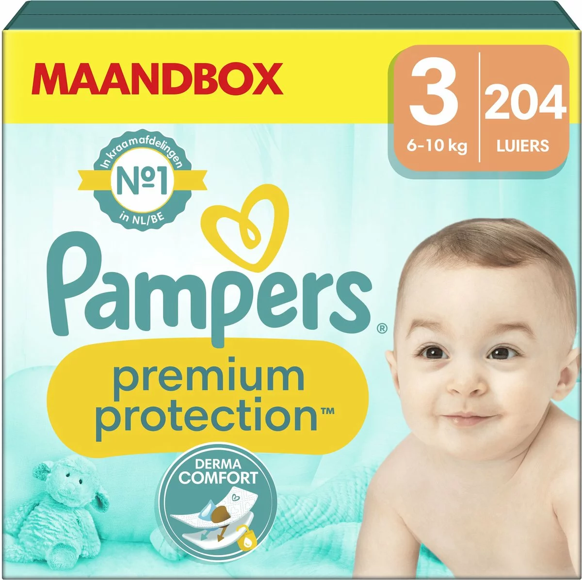 Pampers N°1 luiers voor comfort en bescherming van de gevoelige huid. Langdurig contact met urine en ontlasting kan de gevoelige huid van je baby irriteren, wat ongemakkelijk en pijnlijk kan zijn voor je baby. Pampers Premium Protection luiers zijn speciaal ontworpen zodat ze heel zacht aanvoelen en tegelijk de huid beschermen dankzij 1) een unieke DermaComfort toplaag met absorberende poriën die urine en ontlasting onmiddellijk weghoudt van de huid en vasthoudt in de kern van de luier. Zo blijft de gevoelige huid van je baby droog en beschermd. 2) Daarnaast laten miljoenen microporiën lucht vrij in de luier circuleren om de huid droog te houden; en 3) Tot 100% bescherming tegen lekken dankzij een uniek 3-voudig beschermingssysteem dat urine snel absorbeert en lekken ter hoogte van de taille en rond de beentjes helpt voorkomen; 4) Ultrazachte materialen die je baby in een wolk van comfort en bescherming hullen. Pampers Premium Protection, de N°1 keuze van de kraamafdelingen in Nederland*, zijn 100% veilig voor de huid van je baby. Ze zijn dermatologisch getest en bevatten geen van de EU-parfumallergenen. *Op basis van de verdeling van Pampers Premium Protection luiers maat 0-2 in Nederlandse kraamafdelingen, jan-dec 2022